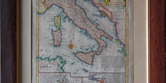 Peter Admin2021-04-02T06:34:52+00:00ITALY, carte coloriée avec belles illustrations du Vésuve et de l’Aetna en éruptions, rare carte recherchée,30 x 22 cm, lithographie de Em. BOWEN, 1747, état impeccable 300.-€