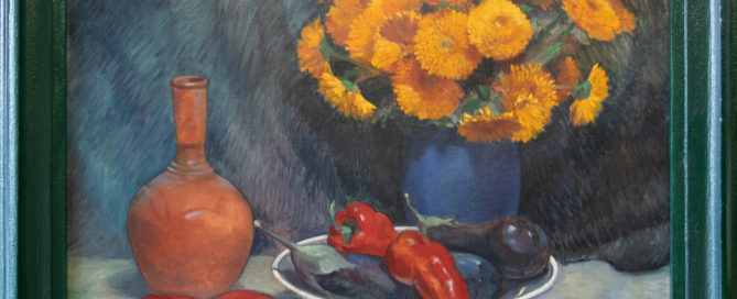 Piments et Fleurs, 1934, huile sur toile. 65 x 65 cm, signé en bas à droite, C. Lentz, état parfait 400.- €